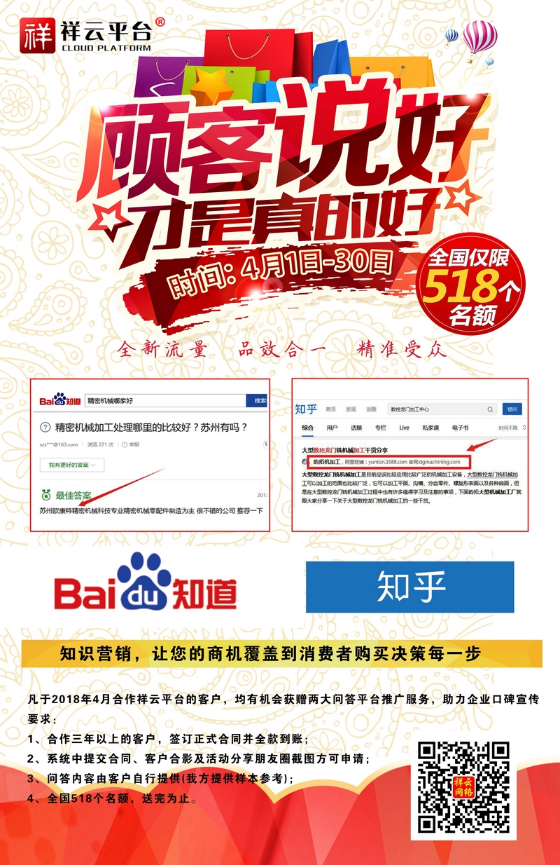 百度知道,知乎。全新流量,品效合一,精準(zhǔn)受眾。現(xiàn)在做祥云營(yíng)銷(xiāo)型網(wǎng)站,就送百度知道、知乎口碑營(yíng)銷(xiāo)! 截止日期:2018-4-28日