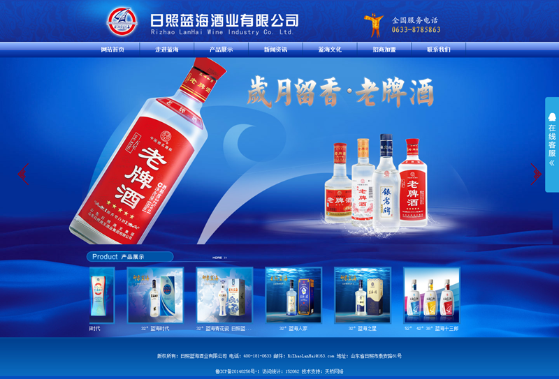 公司旗下?lián)碛杏∠笏{(lán)海V系列、印象藍(lán)海星系列、日照藍(lán)海、藍(lán)海時(shí)代、藍(lán)海十三郎等系列產(chǎn)品及紅日照醇、堯王老酒壇、老牌酒等幾大系列白酒品牌產(chǎn)品。